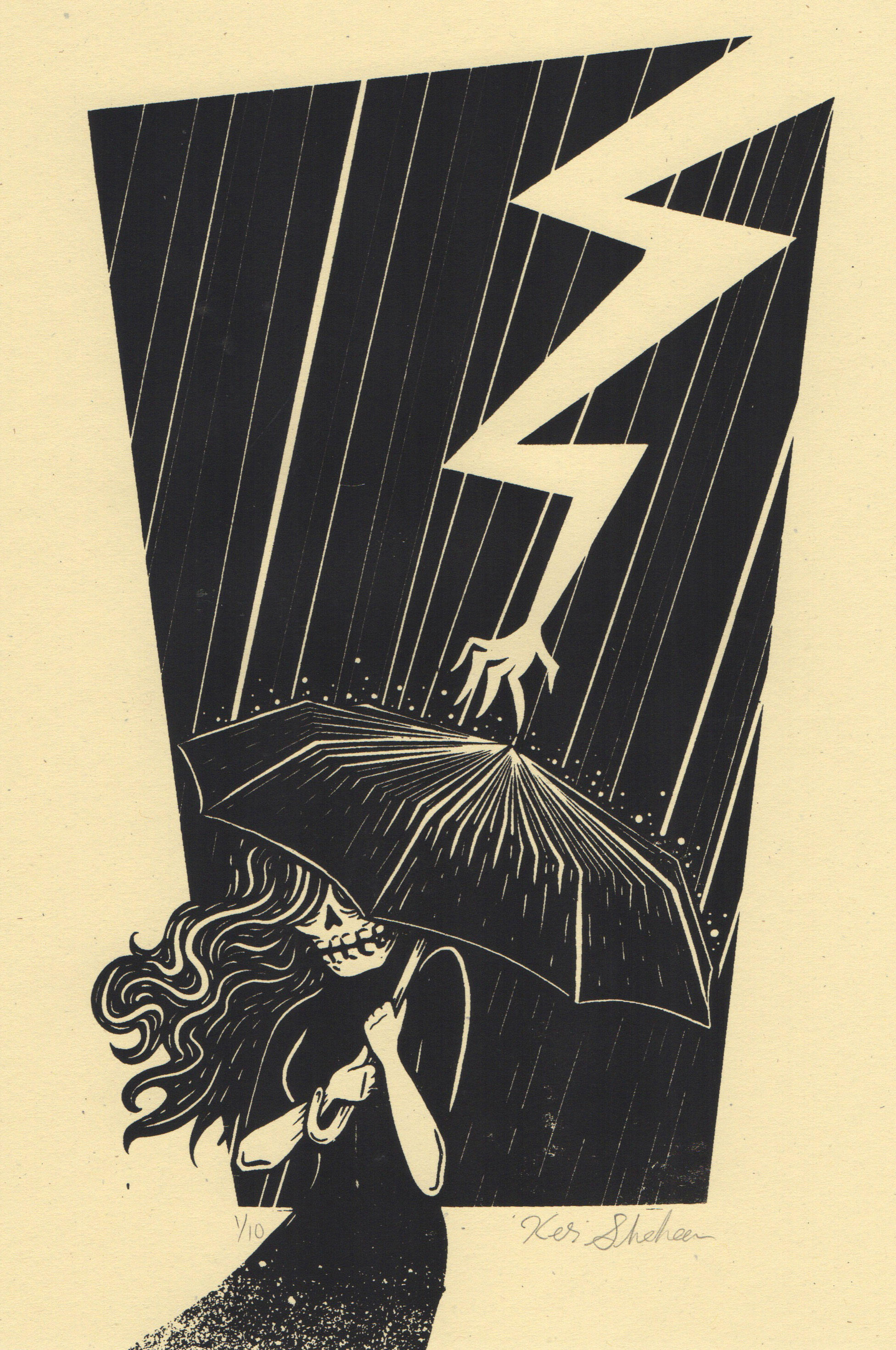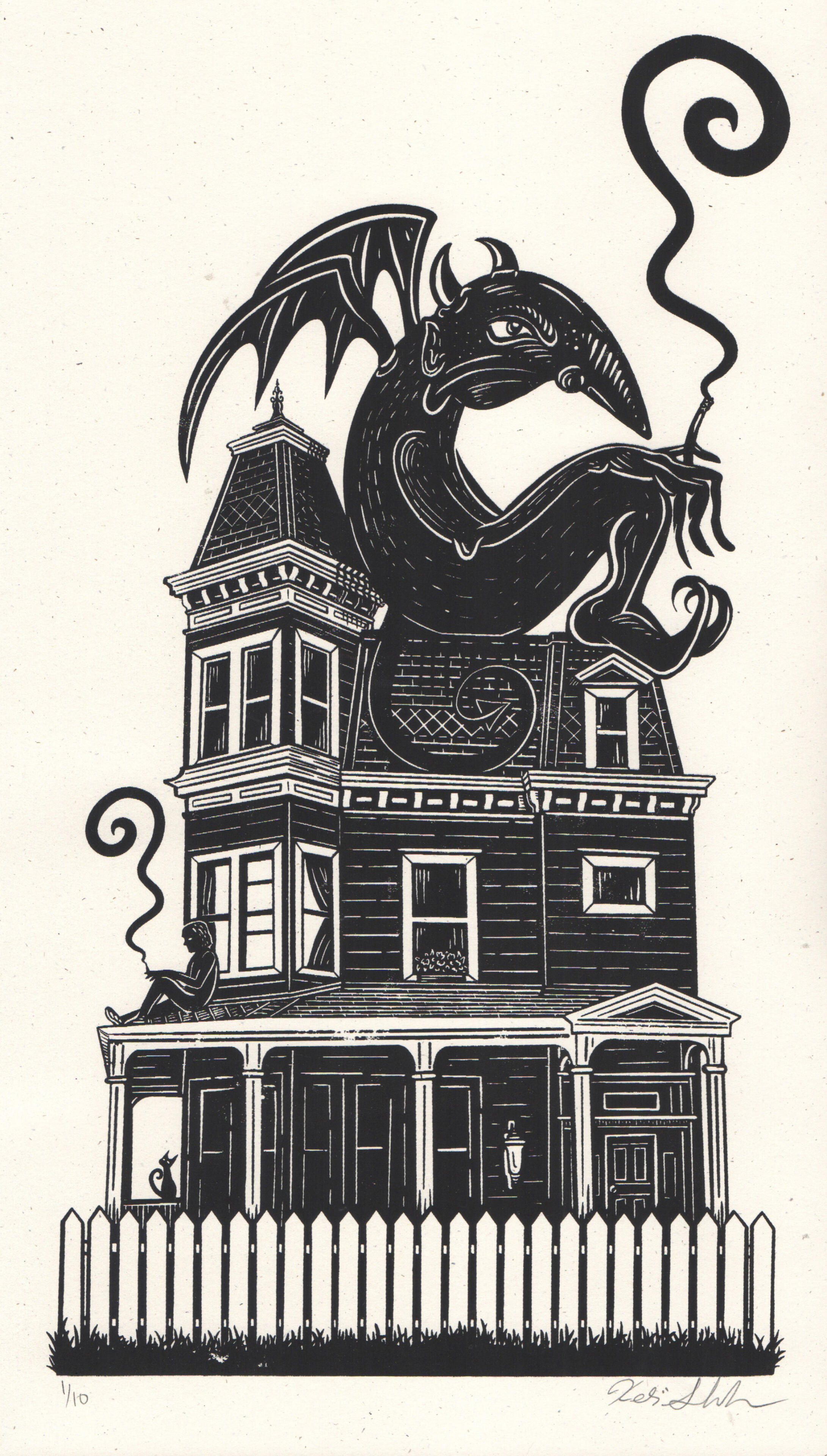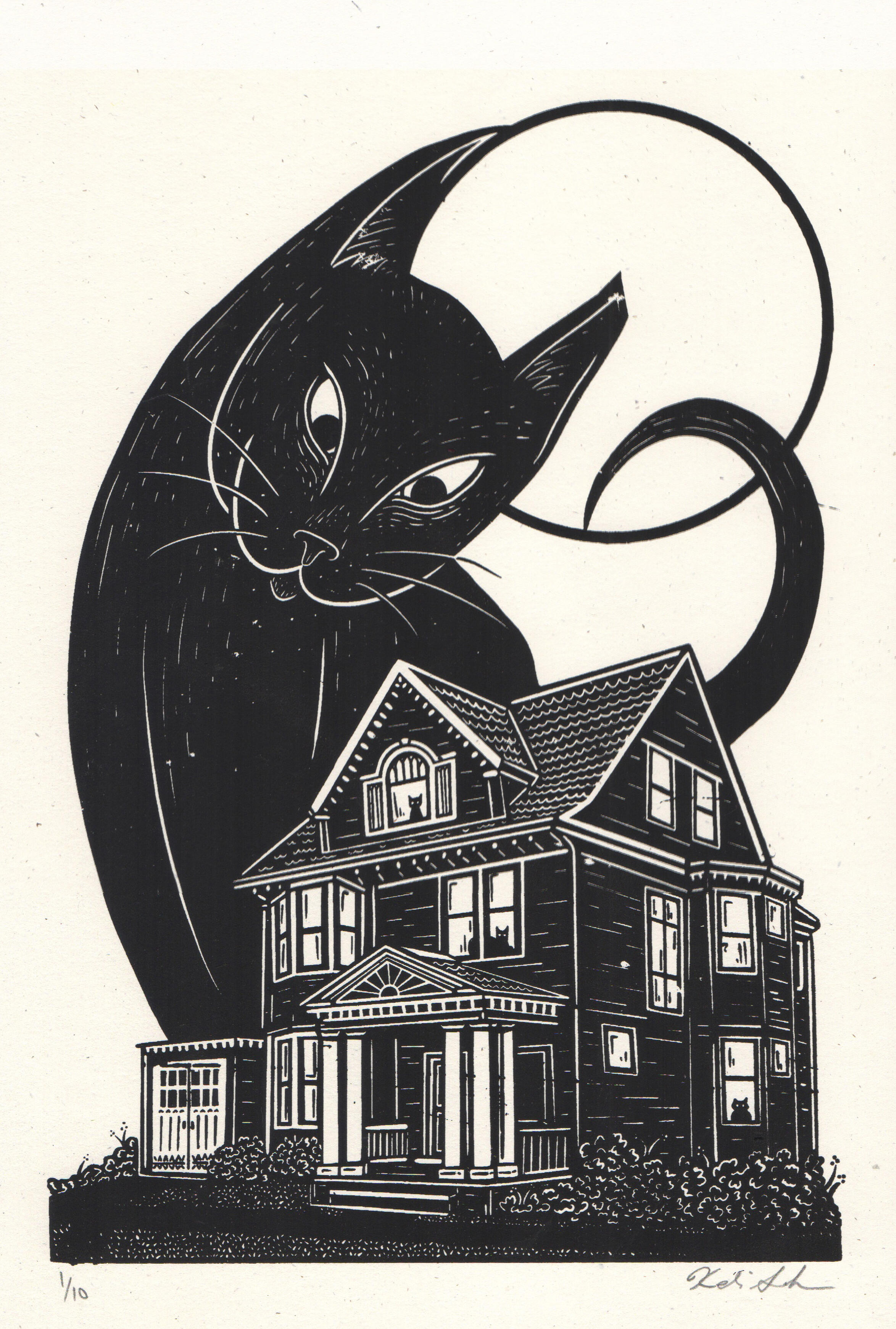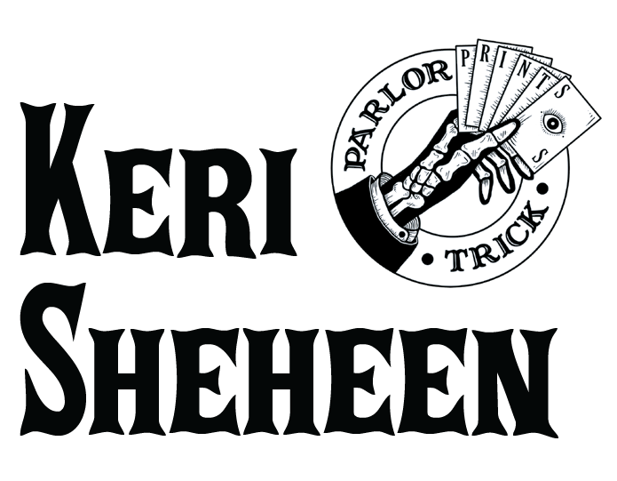 Keri Sheheen is a multidisciplinary artist born and raised in Staten Island, NY. She has a profound interest in macabre folklore, unusual history and the strange that is explored through means of illustration, design, printmaking, and vintage forms of animation.With a BFA in Printmaking from SUNY New Paltz, she has exhibited works in galleries and festivals throughout the tri-state area. This work includes screen printed posters, animations converging with printmaking techniques, and stop motion animation. Her inspiration stems from vintage advertising posters, sideshow banners and pulp art.Beyond the gallery scene, Keri has collaborated with Coney Island USA, where she creates hand-painted sideshow banners for their annual Mermaid Parade in Brooklyn. In 2023-2024, she was commissioned by MTA Arts & Design to design 6 windows and a railing for the newly renovated New Dorp Train Station in Staten Island, NY. She is host to the Parlor Trick Print Exchange, a grant-funded printmaking program that invites U.S. artists to create and share small editioned works within a specific theme.In 2021, Keri officially launched Parlor Trick Prints LLC, an online and traveling print company focused on dark, yet whimsical home decor and apparel. In addition to traditional printmaking, she explores inkjet printing onto wood and canvas, and laser cut merchandise. Her company also offers custom print and laser services for small businesses.She currently lives and works from her home studio in New York alongside her partner, Carl, and two cats, Charlie and Evelyn Bean.