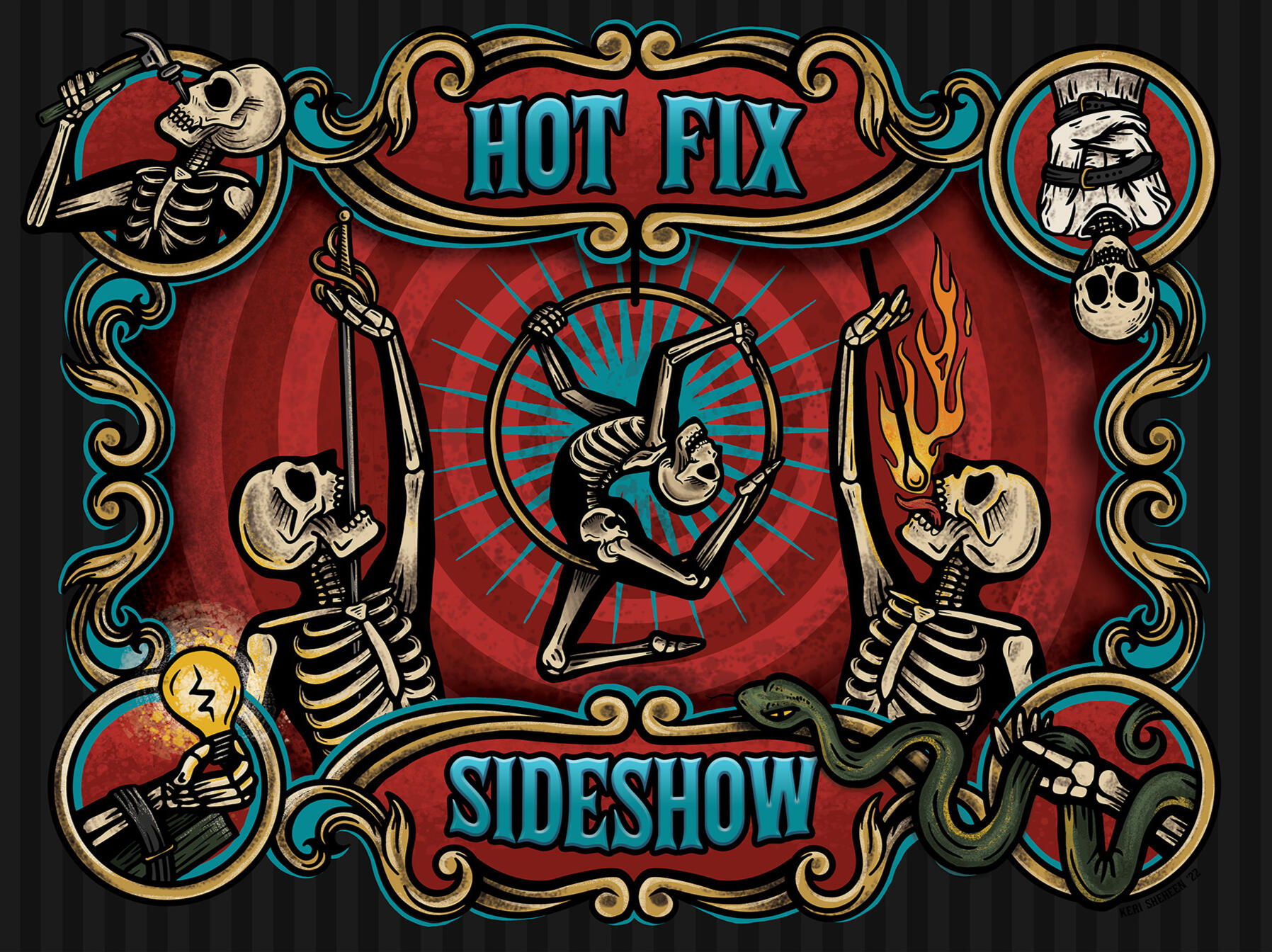I had the pleasure of creating a banner line for Hot Fix Sideshow, a collective of internationally touring & award-winning performers, including the current cast of the Coney Island Circus Sideshow. They specialize in fire performance, sword swallowing, glass walking, aerial arts, mentalism, escape acts and feats of strength.